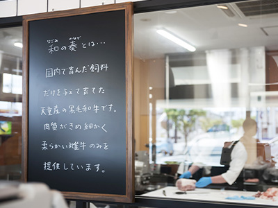 世の中で一般的に美味しさの指標とされているA5等級は、実は脂の量や質を中心に評価されたものであり、必ずしも味の良さを示すものではありません。私たちはその常識にとらわれず、「本当に美味しい牛肉」を追い求めてきました。慶應大学と共同研究を重ね、牛の健康と美味しさを両立させる独自の飼料ブレンドを研究してきました。そこで生まれ、現在使用している『なごみ製法』では、農薬使用制限の厳しい国産原料だけを15種類以上組み合わせ、農家様や企業様からいただいた国産原料を毎日手づくりで調整し、牛一頭一頭の体調や年齢、大きさに合わせて与えています。その細部に対するこだわりが、他にはない深い旨味とやさしい味わいを実現しています。脂に頼らずとも「食べた瞬間に違いがわかる牛肉」。食卓に並べても胃もたれせず、最後の一口まで心地よく味わえる牛肉。そんな新しい美味しさの基準を提案していきます。